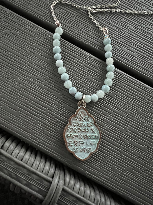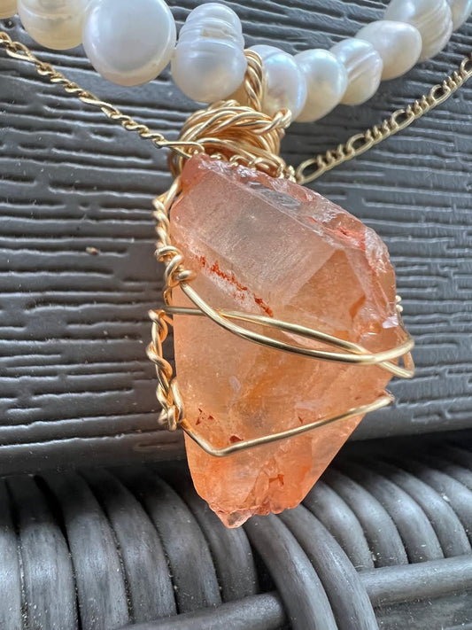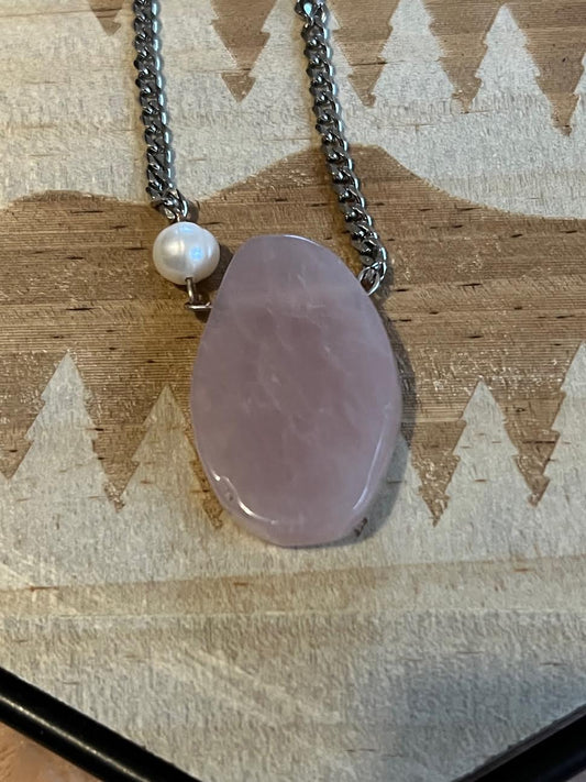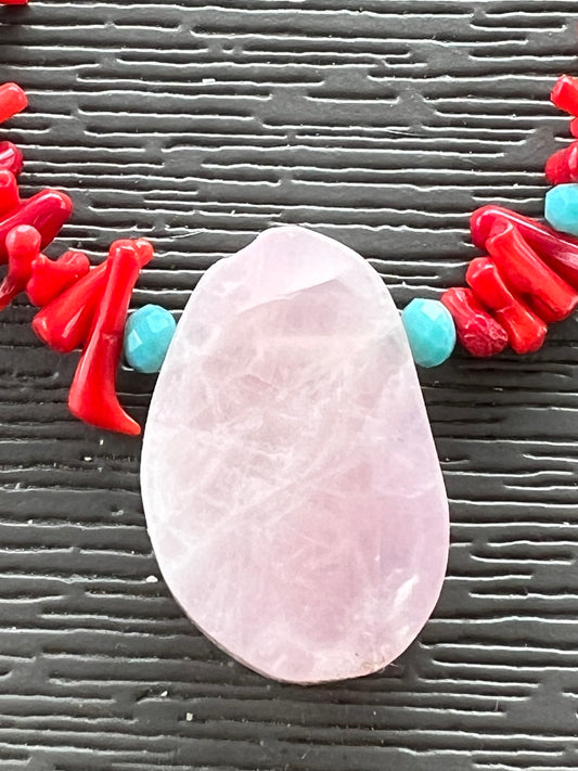 Beaded Rhodonite and Quartz and Aura quartz pendant